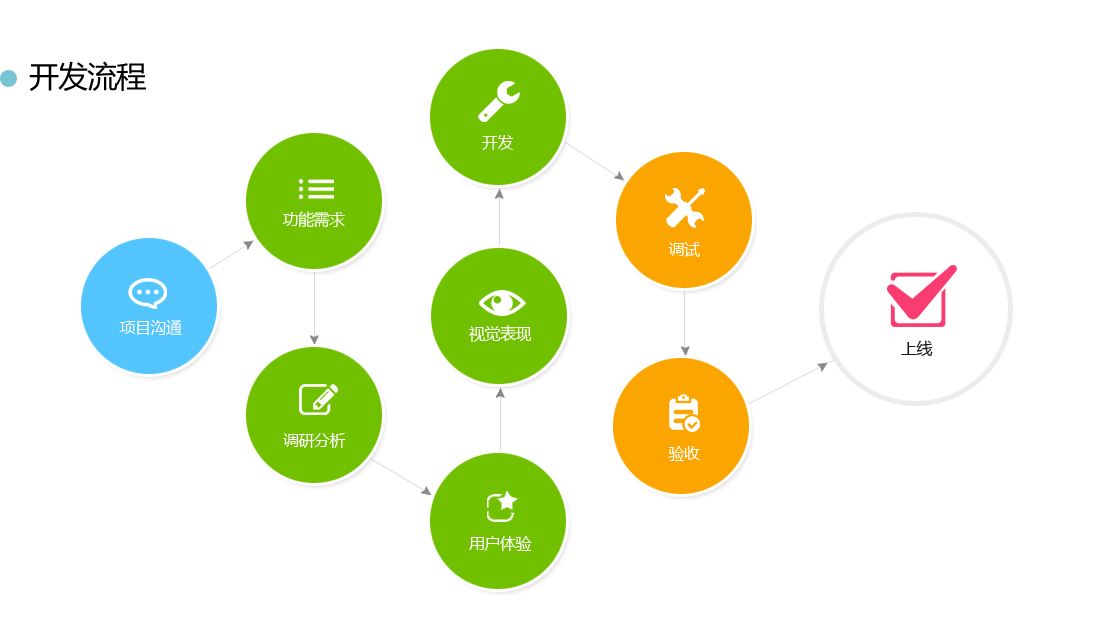 2.研發(fā)階段:接下來就是項目的正式開發(fā)階段,首先進行整體的架構(gòu)開發(fā),然后前端人員進行前端的頁面與特效開發(fā),后端人員進行業(yè)務(wù)邏輯處理與數(shù)據(jù)持久化處理。中間可能會有一些第三方軟件進行對接,比方說微信登錄,qq登錄,微信支付,支付寶支付,等等。最后需要測試人員進行項目的測試,然后再去進行修改。一切準備完畢后,就會將項目教給客戶進行實際的部署與安裝。然后客戶可能會根據(jù)自己的測試體驗提出一些建議與意見。