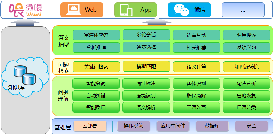 中聯科技微喂智能機器人通過知識庫、集成業(yè)務系統(tǒng)數據庫、集成企業(yè)級搜索三種答案途徑,為用戶提供全方位的解答,針對不同類型的問題,提供不同形式的的解答,滿足用戶的全面需求。